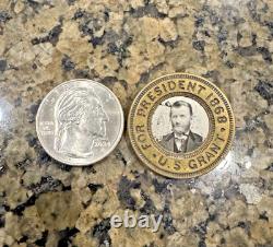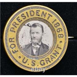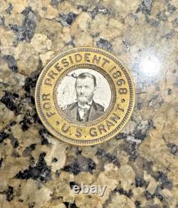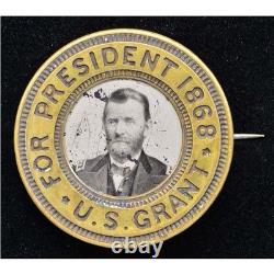 Hard to Find Original 1868 Pinback Button FOR PRESIDENT 1868 U. GRANT Civil War General & POTUS. A fine representation of a pinback campaign badge measuring slightly over 1 in diameter, with a central tintype or ferrotype photograph of Ulysses S. The border on the brass pin reads, FOR PRESIDENT 1868 U. All interesting subject matter and some very rare.
