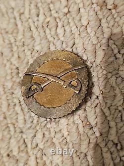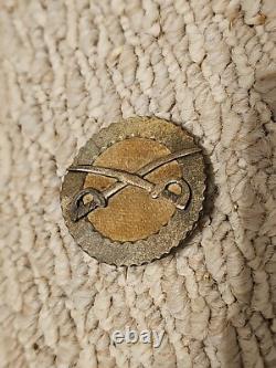 This badge is a unique piece of militaria that captures the essence of the Civil War era. With its intricate design and historical significance, it is sure to be a valuable addition to any collection. The badge is an original, authentic item from the period and is not a reproduction. It represents the Confederate cavalry and is part of the 1st Corps 2nd Division.