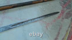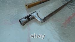 Musket Bayonet Socket + Leather Sheath. 19IN LONG END TO END. SCABBARD 19IN LONG END TO END.