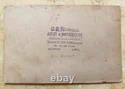 In Clinton, Clinton County, Iowa in the 1880s. PERIOD HAND ID'd ON THE REVERSE. METALLIC "GOLD INKED" BEVELED BORDER AND LOWER FRONT MOUNT PRINTING.