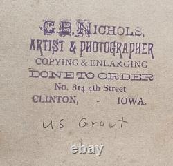 CIVIL WAR MAJOR GENERAL U. GRANT FROM A STEEL ENGRAVING CABINET PHOTO c1892. 1885 was the 18th president of the United States, serving from 1869 to 1877. In 1865, as commanding general, Grant led the Union Army to victory in the American Civil War.